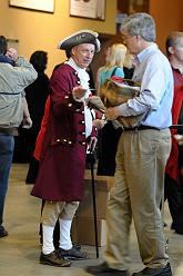 With the gymnasium a little more than half-full of supporters, many of them donning buttons calling him a “True American” or some other phrase expressing their admiration, Glenn Beck began preaching Saturday.In sharp contrast, another Beck rally held in Hoffman Estates yesterday in Barack Obama's home state drew 5,000. Illinois Republican gubernatorial candidate Bill Brady joined Beck at the rally but U.S. Rep. Mark Kirk, the GOP Senate candidate, stayed away from the Right Nation 2010 event. He faces a close contest with State Treasurer Alexi Giannoulias, a close friend of Obama. Recent polls have shown Brady leading Gov. Pat Quinn, who succeeded to the office after the impeachment and Senate trial of former Gov. Rod Blagojevich resulted in his removal from office. Local activist Paul Wheeler is featured in a photo which ran in today's Chicago Sun-Times dressed in his familiar American Revolutionary War-era costume he often wore at Tea Party events in Indianapolis during the 2007 municipal election.